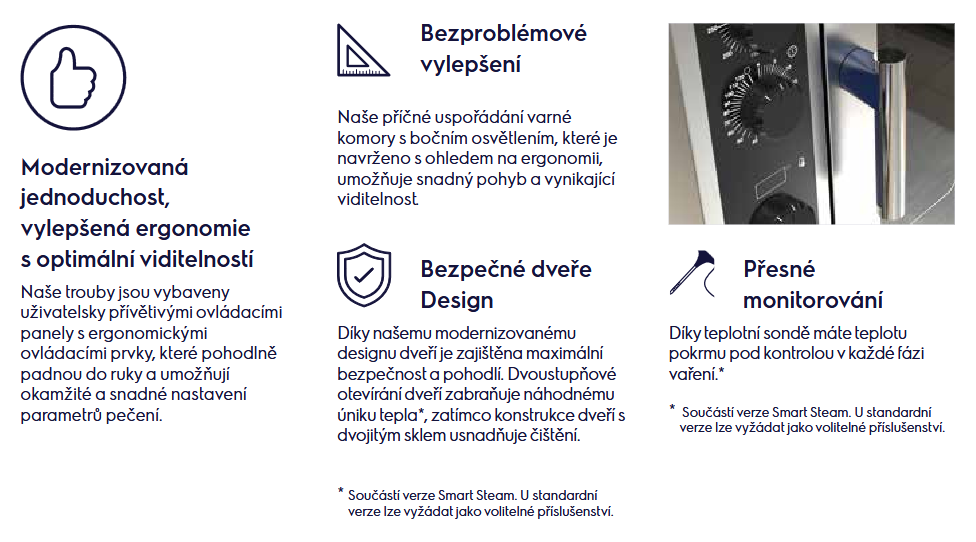 300°C; vizuální displej a teploměr. 1-bodová pokrmová sonda.