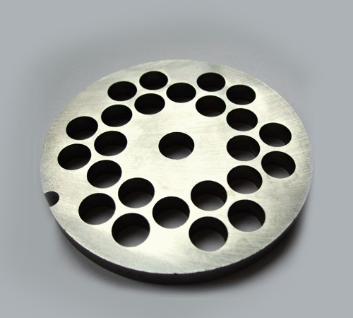 Průtlačná deska (32/12) pro přípojný strojek na mletí masa Rma 27 k univerzálnímu šlehacímu a hnětacímu stroji Alba Hořovice.
