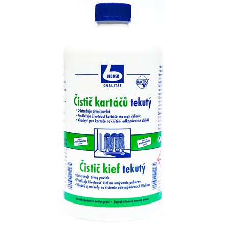 Tekutý čistič kartáčů Becher 1l – hygienické čištění mycích kartáčů na sklenice – čistí a bělí v jednom pracovních kroku – zajišťuje delší životnost kartáčů a udržuje štětiny dlouho pružné – odstraňuje pivní povlak a bakterie – vhodný pro všechny druhy kartáčů na mytí sklenic a na kartáče v tlakový... celý popis